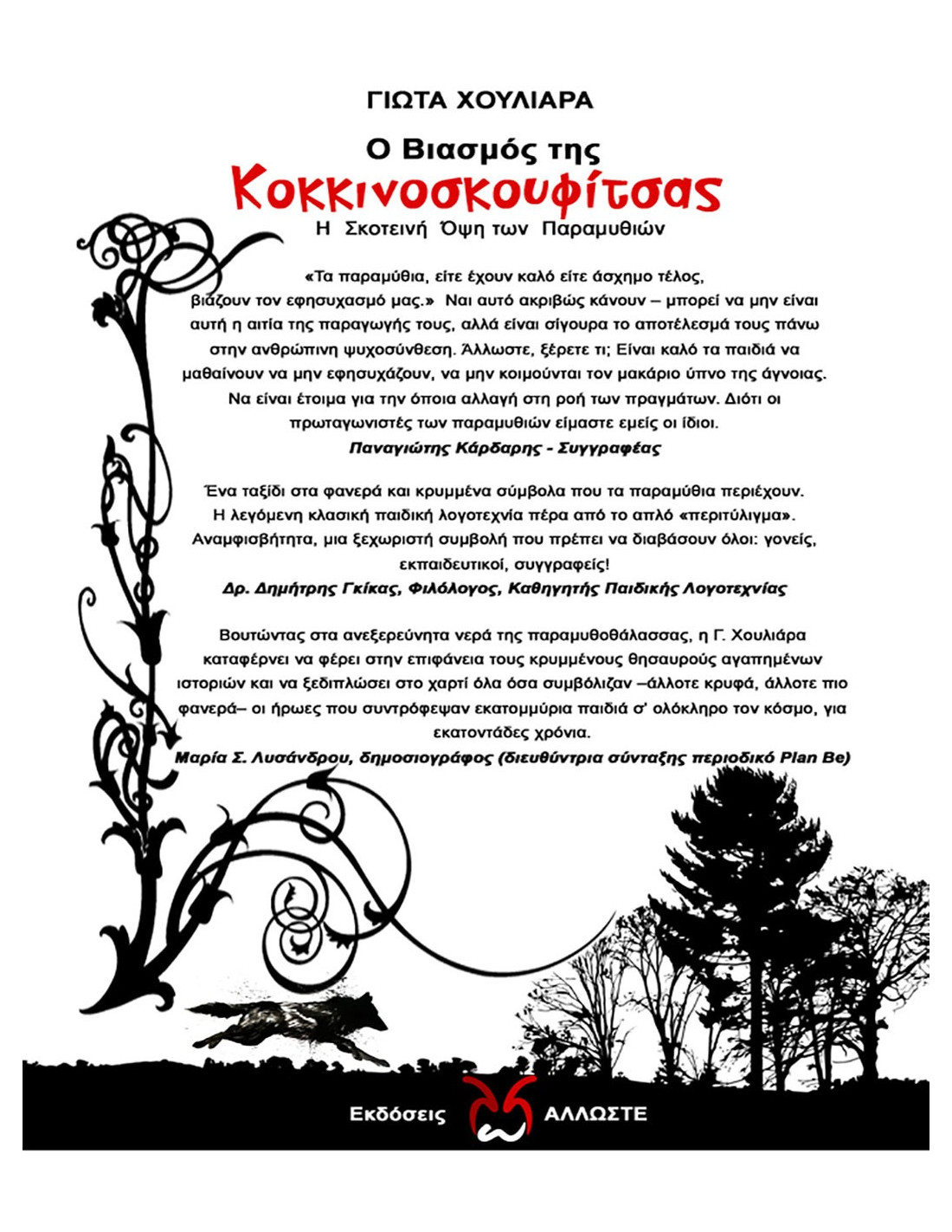 "Μέσα από τις σελίδες του βιβλίου θα πάμε πίσω στο χρόνο, στις σκοτεινές εποχές της ιστορίας και θα αναζητήσουμε την όχι και τόσο παιδική εικόνα των γνωστών μας παραμυθιών. Θα προσπαθήσουμε να αποκωδικοποιήσουμε τη σκοτεινή τους όψη, αυτή που γεννούσε φόβο γιατί όπως έλεγε και ο Άλφρεντ Χίτσκοκ: «Ο φόβος δεν είναι τόσο δύσκολο να κατανοηθεί. Έτσι κι αλλιώς, δεν φοβόμασταν όλοι ως παιδιά; Τίποτα δεν έχει αλλάξει από τότε που η Κοκκινοσκουφίτσα αντιμετώπισε τον Μεγάλο Κακό Λύκο. Αυτό που μας φοβίζει σήμερα είναι ακριβώς το ίδιο πράγμα που μας τρόμαζε χθες. Πρόκειται απλά για έναν διαφορετικό λύκο.»
