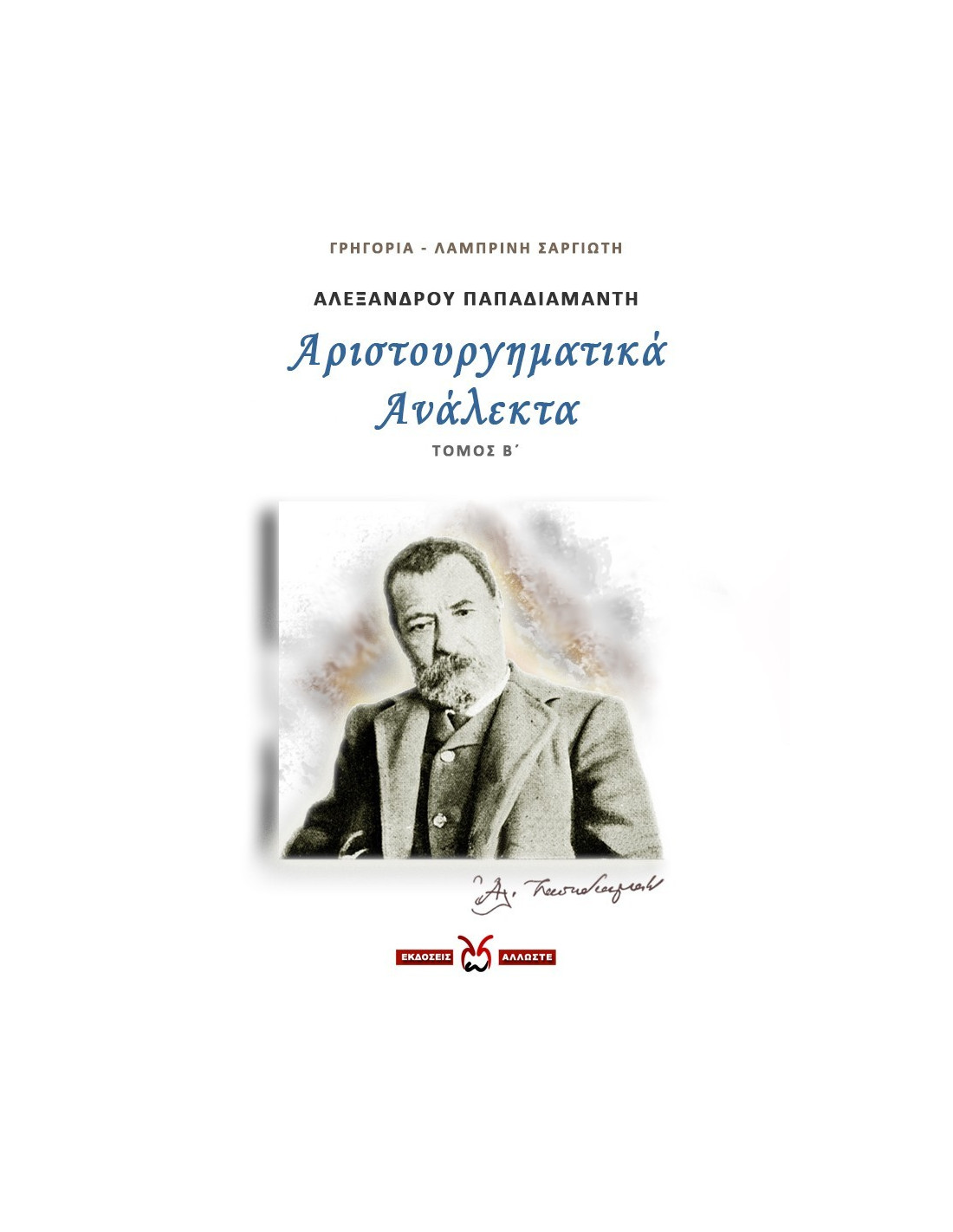 "Παραδίδοντας στο αναγνωστικό κοινό τον δεύτερο τόμο των Αριστουργηματικών Ανάλεκτων του Αλέξανδρου Παπαδιαμάντη, ας μας επιτραπεί, εν είδει μικρής εισαγωγής, να παραθέσουμε την κρίση του Ναπολέοντα Λαπαθιώτη για τον μεγάλο συγγραφέα και το έργο του. Αν και γραμμένη σχεδόν προ εκατονταετίας, φαντάζει προφητική και προχωρημένη για την εποχή της, ενώ παράλληλα διακρίνεται για την ευστοχία και την σαφήνειά της, προσεγγίζοντας τα όρια του εμβληματικού λόγου. Τα λόγια του αποκτούν μια ιδιάζουσα βαρύτητα, αν ληφθούν υπόψιν οι χαοτικές αποστάσεις που χώριζαν τα δύο αυτά πρόσωπα, καθώς ο αριστοκράτης ποιητής, λόγω καταγωγής και ιδιοσυγκρασίας, είχε επιλέξει να οικειοποιηθεί χώρους και τρόπους ζωής εκ διαμέτρου αντίθετους από εκείνους του ταπεινού Σκιαθίτη και του σύνολου κόσμου που αυτός εκπροσωπούσε. Όμως, αν και ευρισκόμενος στην αντίπερα ιδεολογική όχθη, του λόγου το ασφαλές του αντισυμβατικού ποιητή για τον ποιητή Παπαδιαμάντη θεωρούμε ότι επαληθεύεται σήμερα.